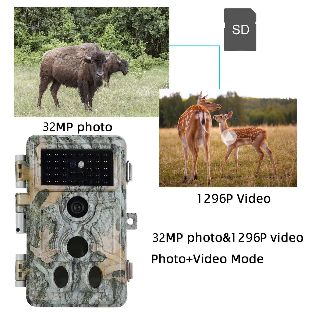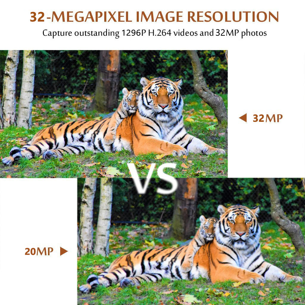 Capture max 64MP images and 1296P videos with no audio when motion detected (monochrome at night). Select the desired resolution for still photos from 2 to 32 megapixels and video resolution(pixels per frame). Higher resolution produces better quality photos but creates larger files that take more of the SD card capacity.