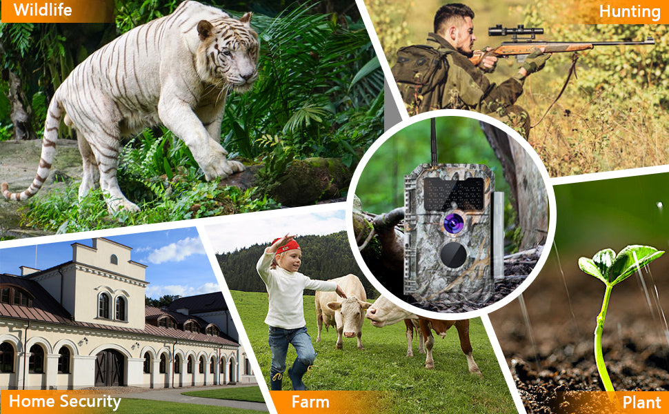 1. Unique wireless WiFi & Bluetooth Connection: low-power-consumption Wi-Fi and Bluetooth technology and comes with a free and easy-to-use APP, allows you to operate your cameras through cell phone and send pictures from trail camera to your phone to view easily. No monthly fee. No remote control is required. All you need to do is stay within the Wi-Fi signal range.