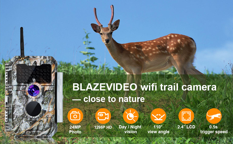 You will find into our Blaze Video package, your: Wireless Bluetooth WiFi Game Trail Camera with 64MP 1296P Video Night Vision No Glow Motion Activated for Wildlife Observing and Home Security | W600